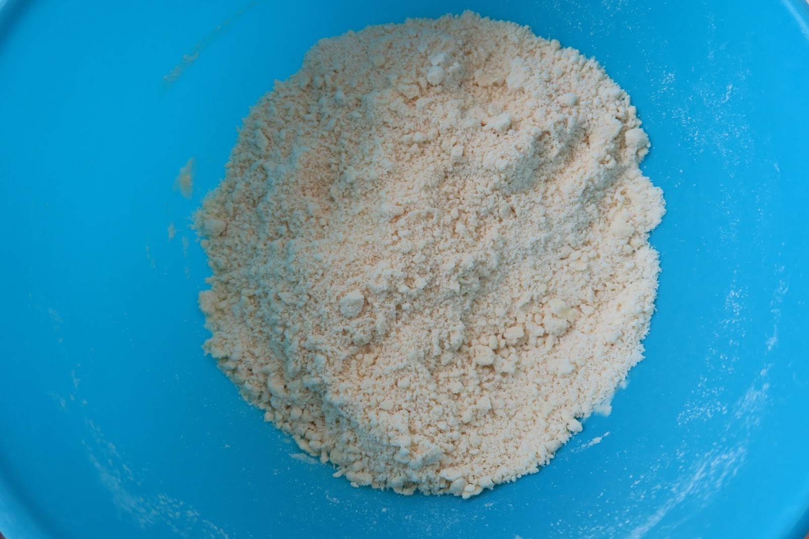 To make the pastry I rubbed butter into plain flour until it resembled breadcrumbs.
