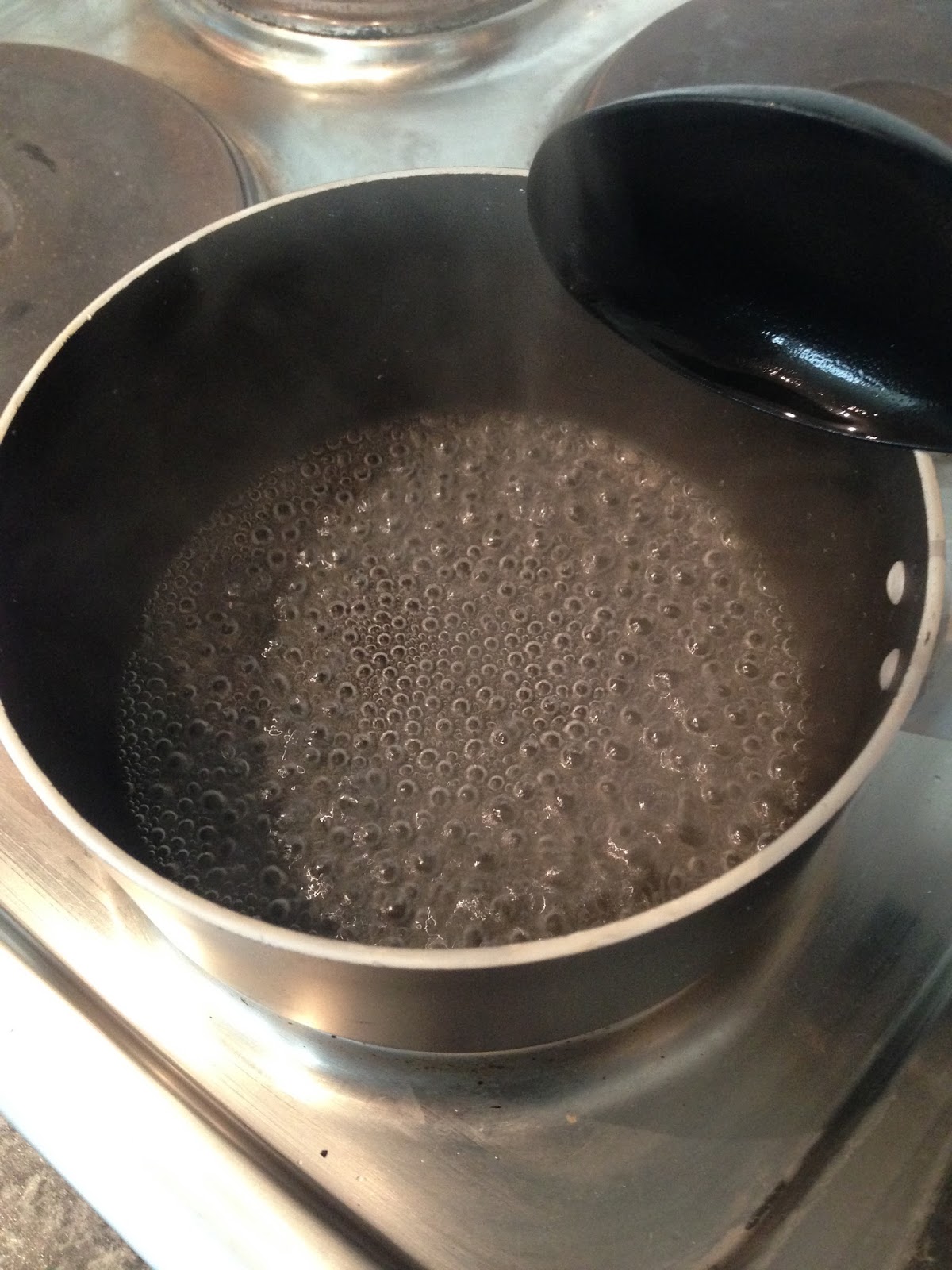 I made a sugar syrup using caster sugar and water. I brought it to the boil in a pan and let it bubble for 1 minute. Then I took it off the heat and let it cool down.