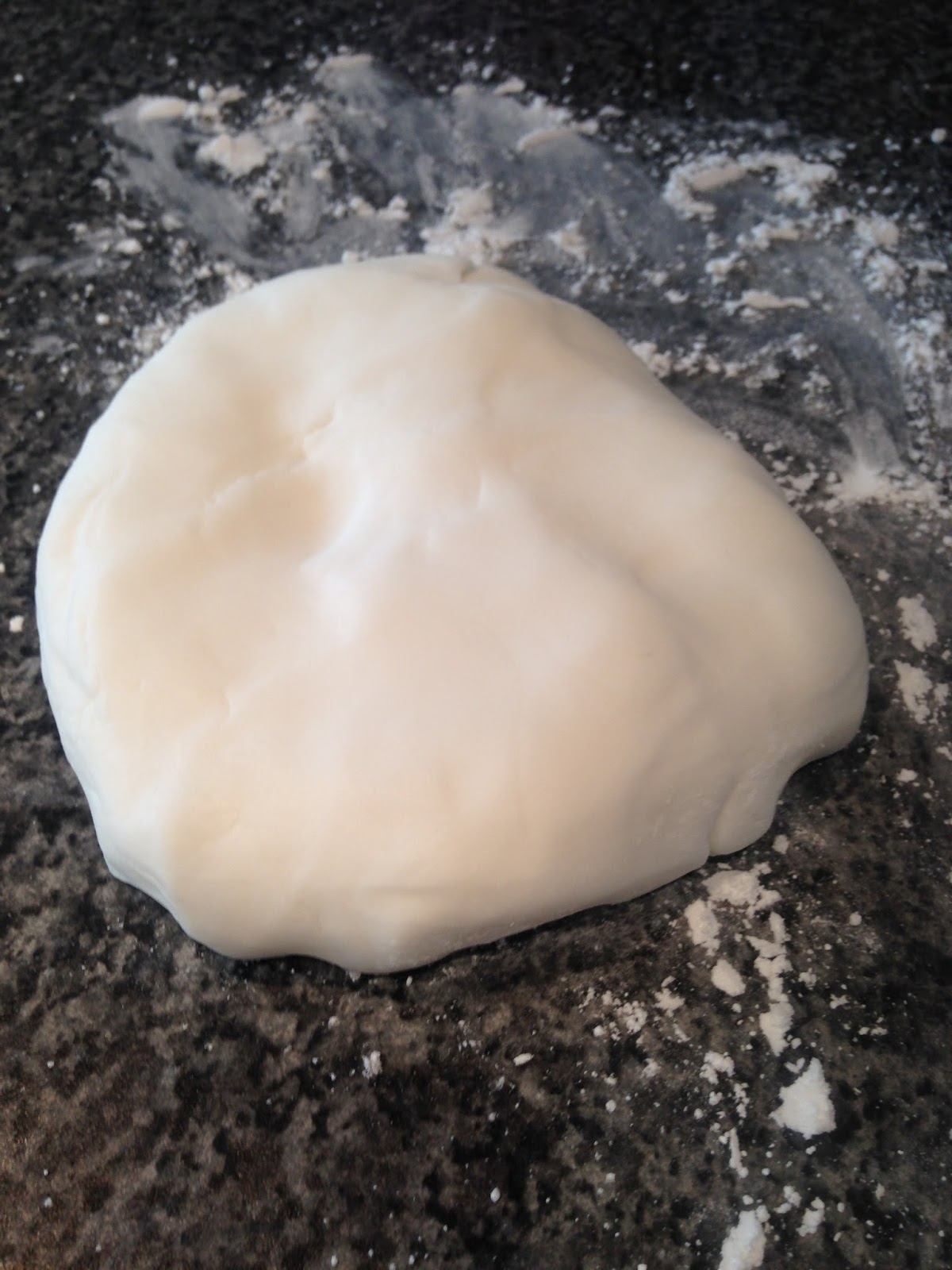 I started by kneading white fondant until it was soft and pliable, to stop it from sticking I used icing sugar to dust the work surface.